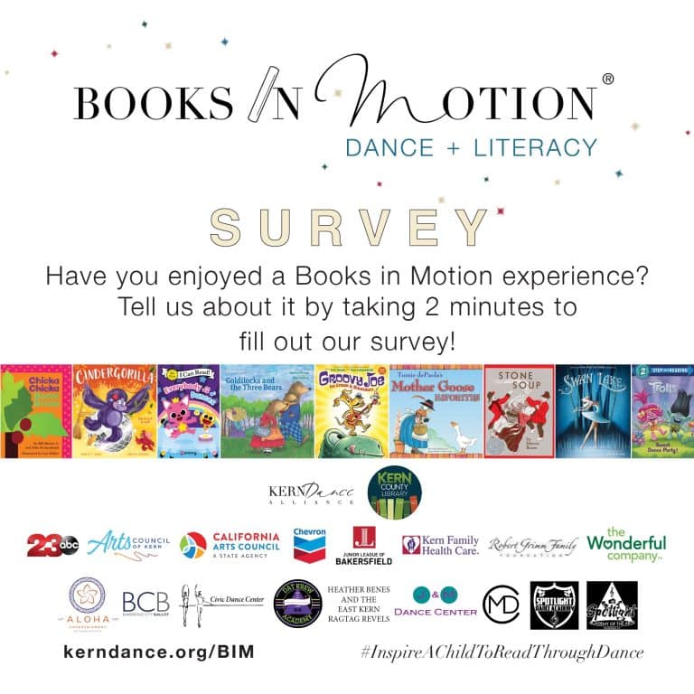 For the ninth consecutive year, Books in Motion®: DANCE + LITERACY, an award-nominated, evidence- based summer reading program that uses dance to promote literacy by focusing on Common Core Standards for Reading Literature returns to libraries across Kern County this summer. KDA, Kern County Library, and Kern County dance organizations will launch Books in Motion: DANCE + LITERACY with the goal of reducing summer slide by encouraging reading and promoting healthy living through movement and dance.